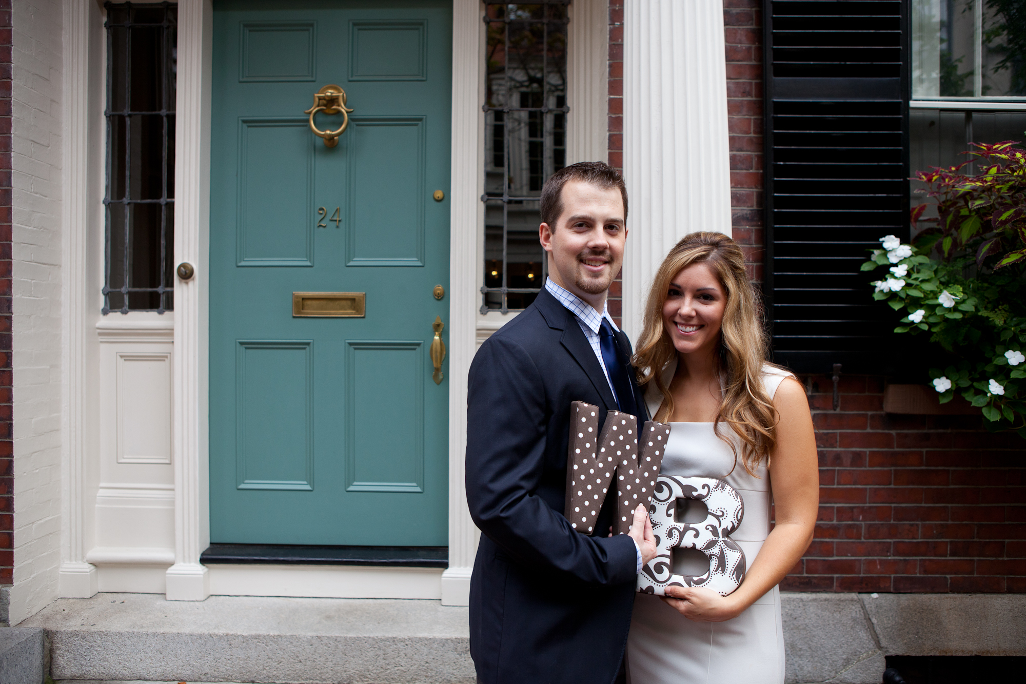 Two weekends ago we met up with our old W.B. Mason co-worker Louis Abate, of Abate Photography, and his gorgeous wife/assistant for the evening, Kristin, to have some photos done around Boston. We started on Beacon Hill, discovered a great little white buggy-style car, an amazing side-street with a crazy stone-cobbled drive, and a turquoise door I’m filing away for the future casa D’Angelo.