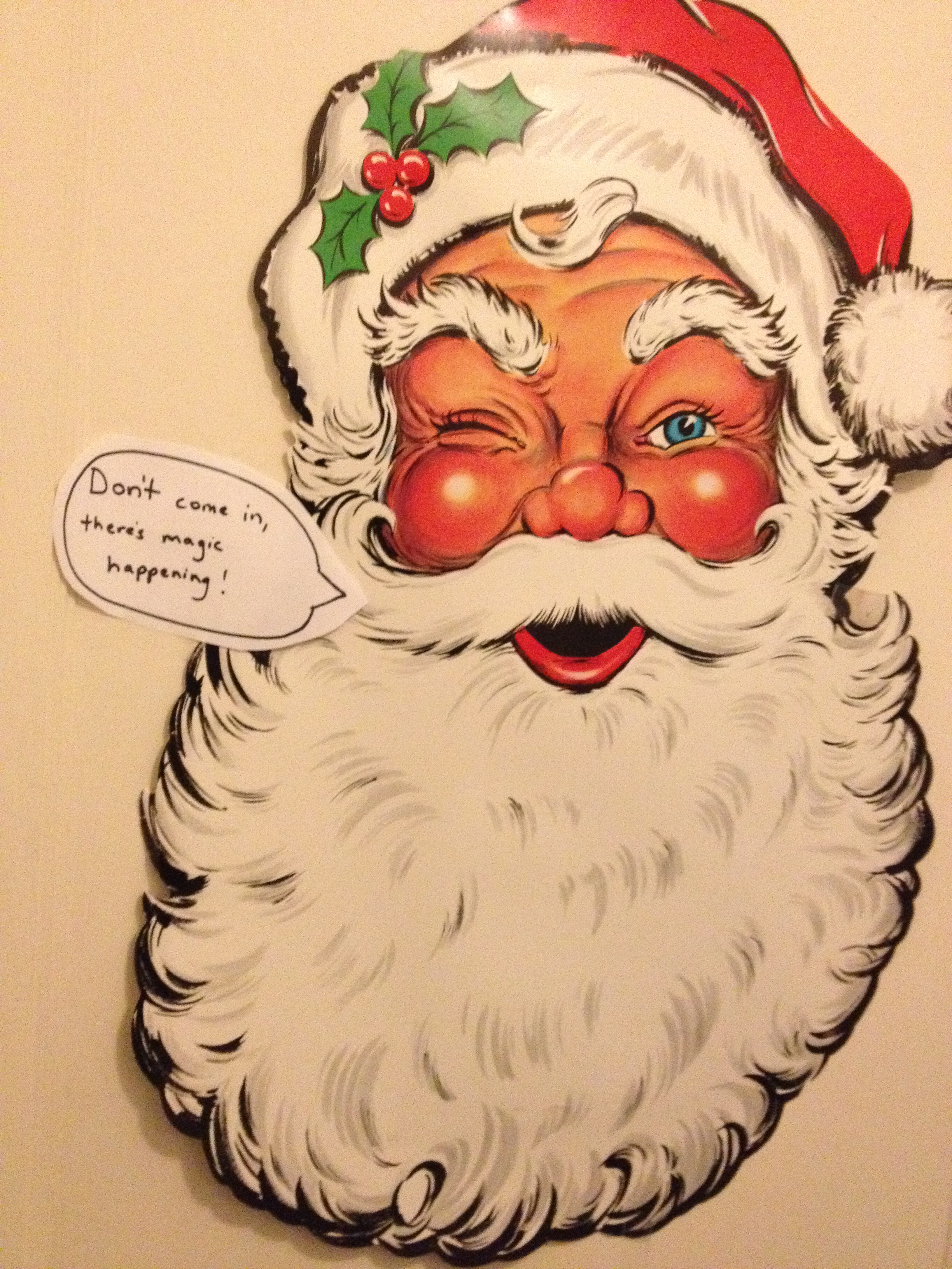 X Decorate the house 12/6 – 12/18 … click here to see Brian’s creepy bathroom door Santa