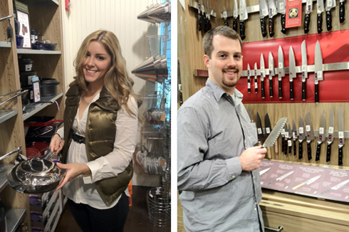 We arrived at 10 am on Sunday morning expecting a crowd of couples, only to learn we had the place all to ourselves! While our lovely host Claudia whipped me up a cappuccino [WHAT?!] we zipped through bakeware. Then, cappuccino-in-hand, got schooled in all things cookware.