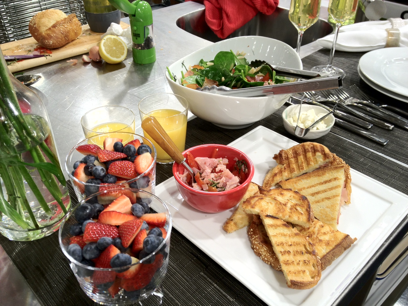 Then, while we compared non-stick skillets, Claudia prepared brunch for us.