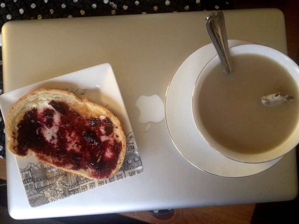 Drinking: green tea but wishing for the discontinued Hersehy’s “Goodnight Kisses: White Hot Chocolate”