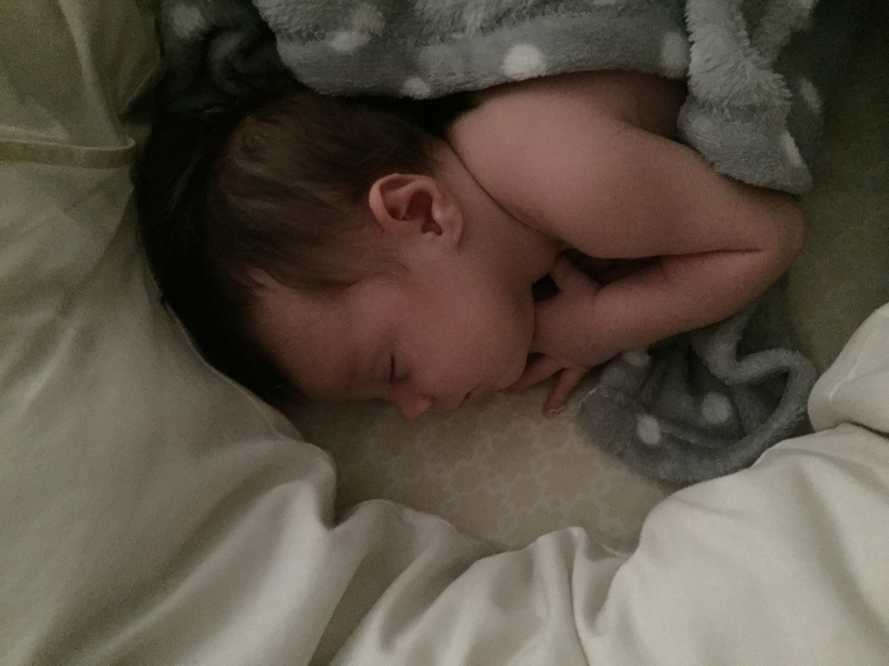 It’s weird because she’ll take that side sometimes, but not always. This morning we even successful nursed in side-lying position which we haven’t successfully been able to do so far. It was really nice! I actually snoozed a bit while she nursed this morning and must have fallen back asleep because when I woke, she’s finished and was peacefully snoozing in front of my chest, a little milk mustache and beard splashed on her sweet little face to show for her nursing efforts. I melted. And then proceeded to stare at her, propped up on my elbow for about 45 minutes this morning.