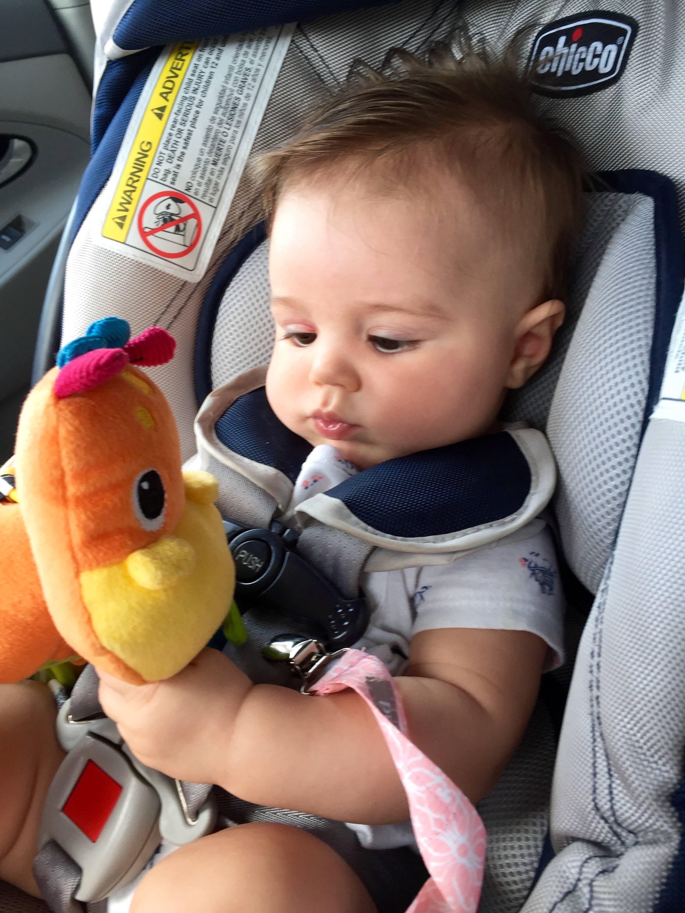 For about 5 straight minutes, she had a death grip on her toy cow’s “hooves” as she intensely studied the black and white pattern. The concentration and seriousness made me crack up. I’d never seen her do this.